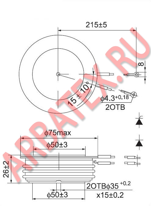 • Uoбp макс, В - Максимальное постоянное обратное напряжение