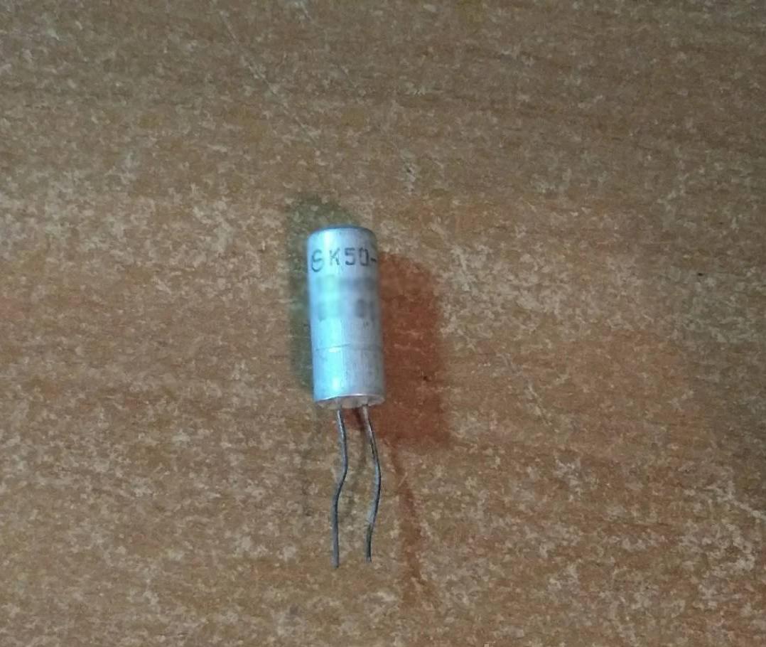 К50-6 50в 5мкф конденсатор оксидно-электролитический постоянной ёмкости.