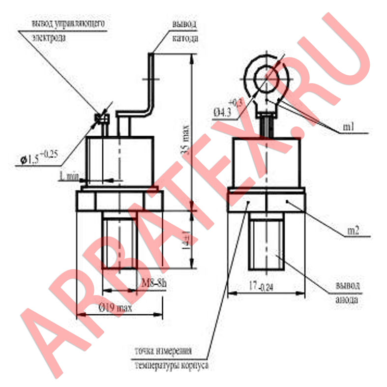 Масса тиристора не более 6 г.
