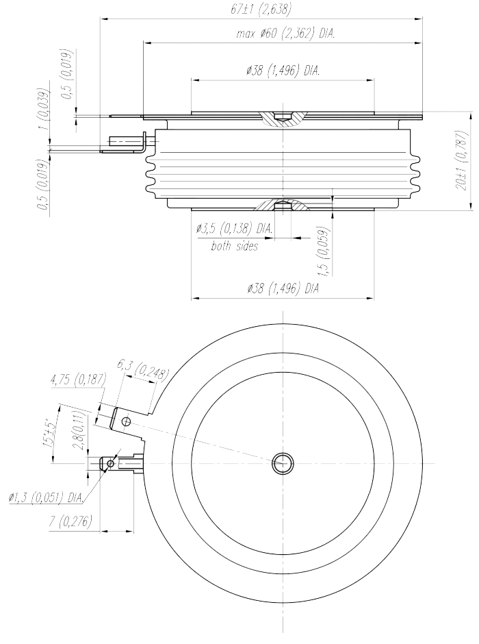 Масса тиристора не более 70 г.
