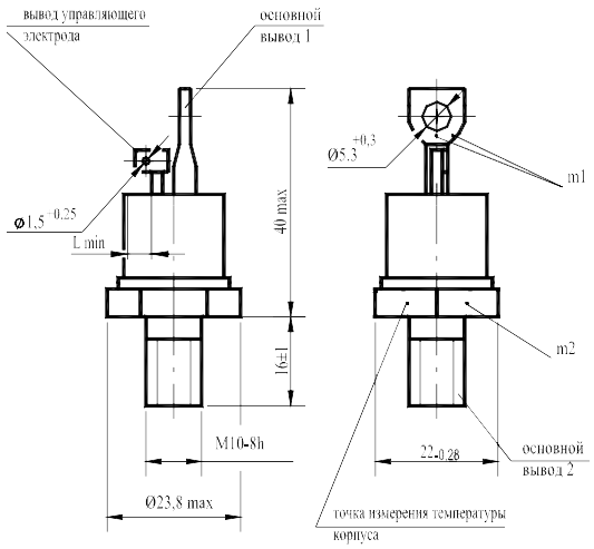 Масса тиристора не более 6 г.