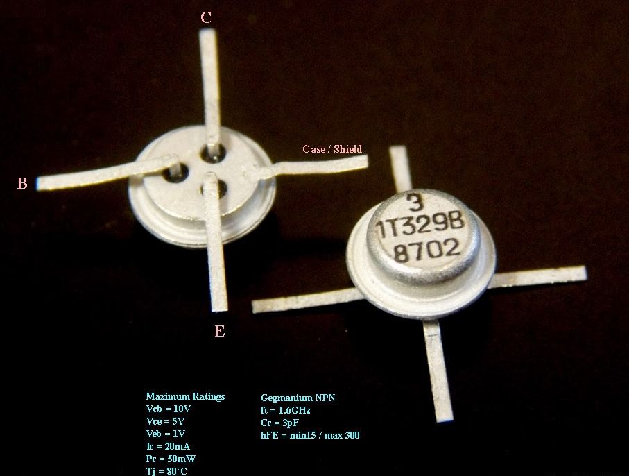 Транзисторы 1Т329А германиевые планарные структуры n-p-n усилительные с нормированным коэффициентом шума на частоте 400 МГц.