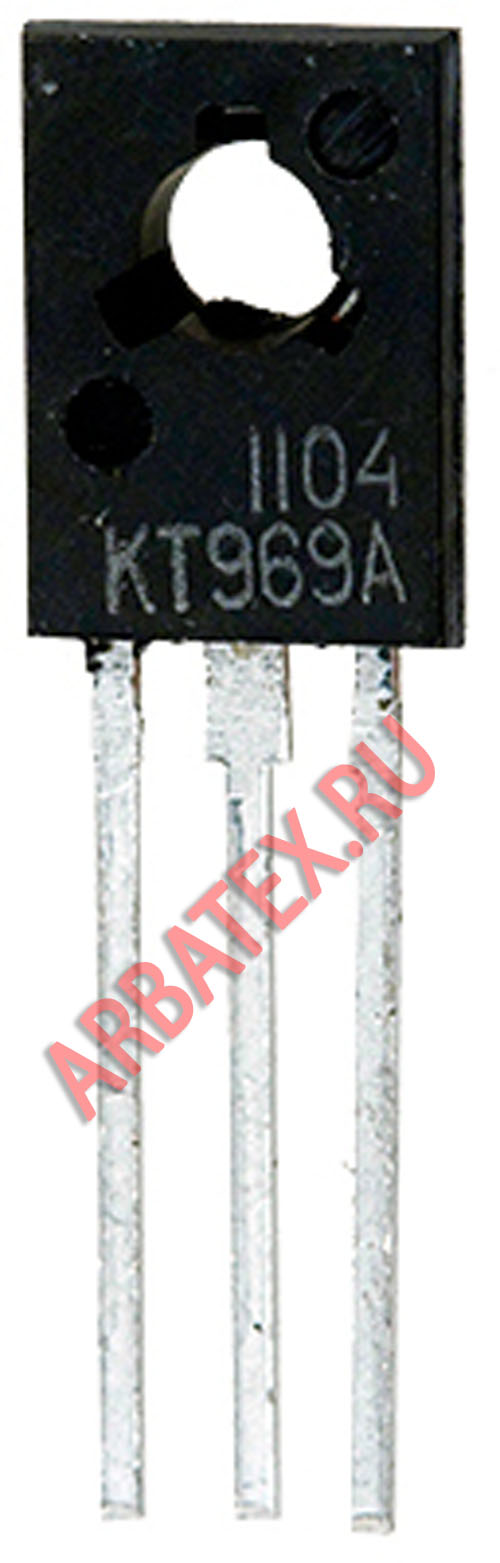 Транзистор КТ969А выпускается в пластмассовом корпусе с жесткими выводами.