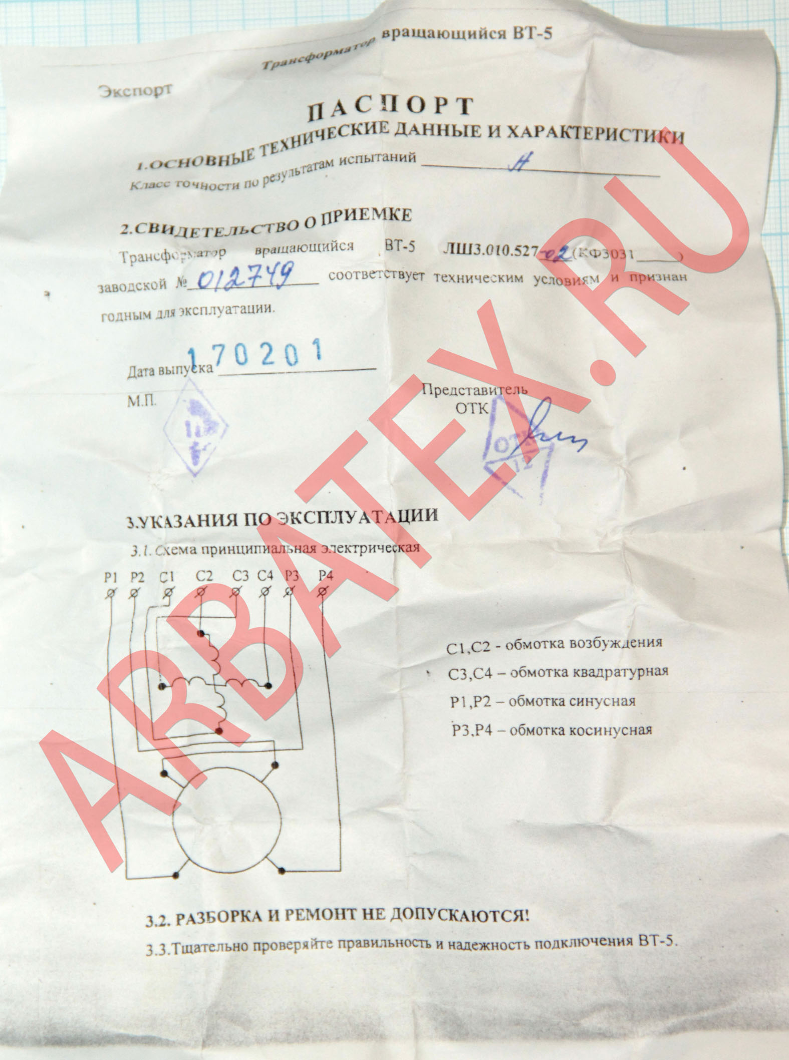 ВТ-5 лш3.010.527-02 кл.А
